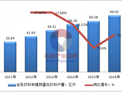 - 2017年中国植物蛋白饮料产量及增速前景分析预测(图)