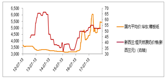 作为原料的箱板纸与原奶价格呈现上涨趋势,尤其是箱板纸对小型企业产生挤压。