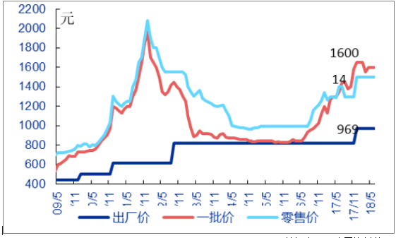 从需求结构来看,2011 年经验数据显示:政商务消费占比 82%,大众消费占比 18%。2016年政商务消费占比 55%,大众消费占比 45%。2017 年政商务消费占比 35%,大众消费占比 65%本轮行业复苏背后,白酒需求结构发生了显著变化,大众消费占比逐步上升,17 年甚至超过政商务消费比例。大众消费需求的增长是一个稳健的过程,不会出现断崖式下跌,需求结构的变化拉长了本轮白酒的景气周期