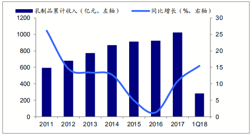 2017年国内宏观经济稳中有升,传导至终端消费需求回升,低线城市需求回升弹性和空间尤为明显,对乳制品行业复苏贡献重要力量。短期来看,我们判断2018年乳品行业仍有望保持较为景气的市场需求。