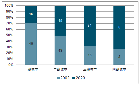 中长期看,未来更多的小康家庭来自三四线城市。随着三四线城市收入水平的提高,以及生活成本和房价较低,未来更多中产阶层(小康家庭)将来自三四线城市,成为消费增长的主力。根据预计,到 2022 年,中产阶级中,来自三四线城市的占比将从 2002年的 18%提高到 39%,而在一二线城市的占比则从 83%降到 61%。