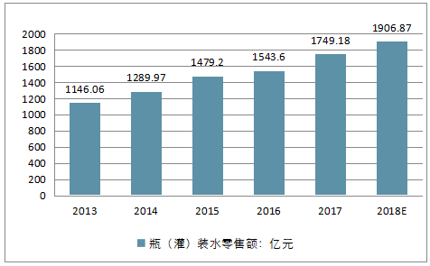 2013-2017年中国瓶(灌)装水零售量增长走势