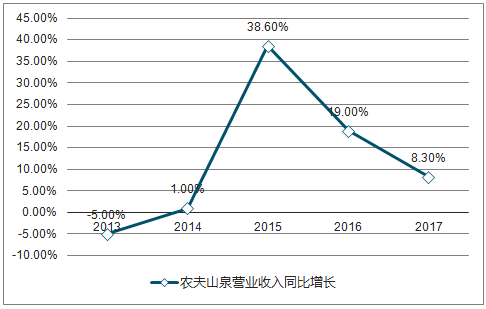 2013-2017年中国农夫山泉营业收入同比增长走势