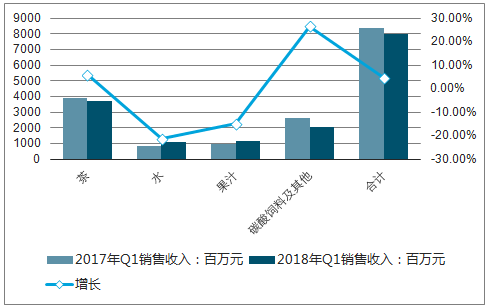 康师傅:2018年第一季度康师傅饮品业务即饮茶( 包含奶茶) 销量市占48.3%, 继续稳居市场首位, 同比上涨6.04%; 康师傅水类销额第二, 同比下降21.4%。 据悉, 在包装水方面为了积极应对消费升级,康师傅在第一季度对包装饮用水开展产品升级, 并上市了高端产品天然矿泉水。