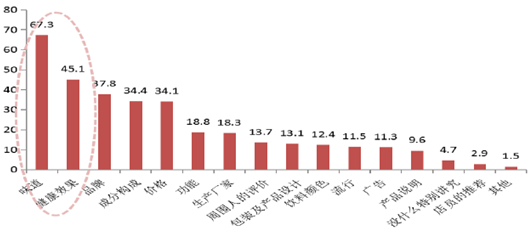消费者选择时首先考虑口感和健康效果