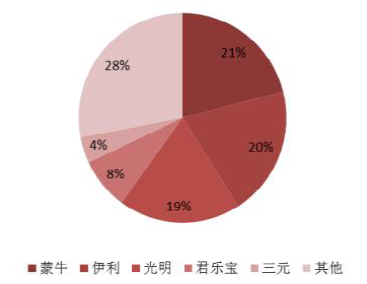 酸奶业务一直是蒙牛的强势业务,公司近年来加大了兼并收购的速度,2010年收购君乐宝51%的股权,同年与达能达成战略合作、成立合资公司,主攻低温酸奶市场,酸奶销售额占公司收入比重从2010年10.2%提升至2015年的23.5%。2015年蒙牛在全国低温酸奶市场继续领先,市场份额稳居行业龙头。