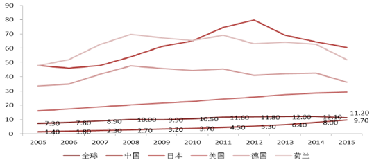 与发达国家相比,中国的酸奶消费量未来仍有较大提升空间。根据Euromonitor 统计数据,中国的人均酸奶消费额远低于发达国家,近10年来也持续低于世界平均水平,但差距有缩小的趋势。以2015年统计数据为例,中国酸奶的人均消费仅9.7 美元,是美国同期人均值的33%,德国的27%,荷兰的19%,日本的16%。未来受益于城镇化和消费升级,预计整体酸奶市场仍有较大增幅,人均酸奶消费额上升是必然趋势,低温酸奶有望分一杯羹。