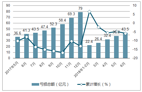 2018年1-6月饮料行业亏损总额及累计增长走势情况