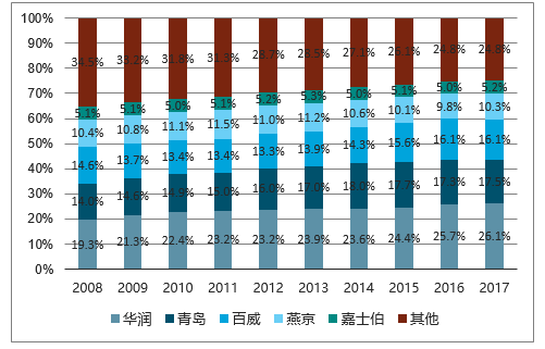 啤酒市场 CR5 不断提升