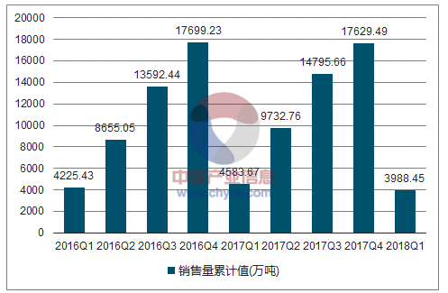 | 年份 | 销售量累计值(万吨) | 产销率同比增减(%) | 库存比年初增减(%) |