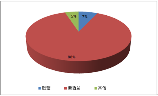 国内进口奶粉新西兰占比88%,占绝对份额。