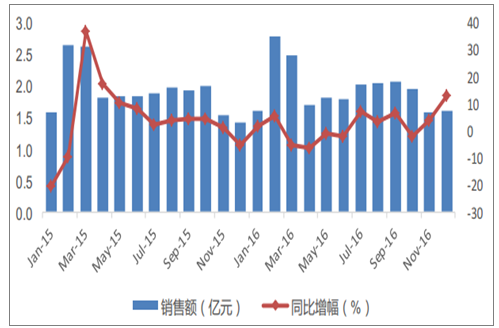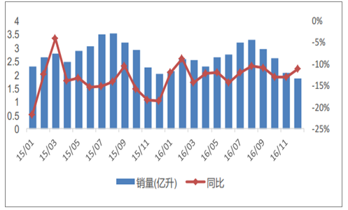 中果的趋势很大程度上接近于整个果汁市场,过去三年增速一直在放缓。中果销量持续下滑,但是均价一直上涨,最终反映在销售额上是有一定增长,但增长幅度放缓。2015 年增长 3.8%, 2016 年增长 1.8%。
