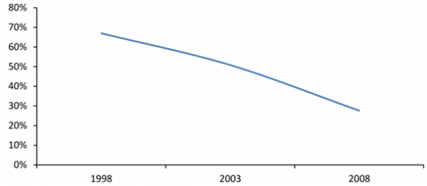 中国 0-6月婴幼儿纯母乳喂养率偏低并仍处于下降