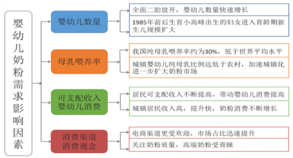 国内婴幼儿奶粉市场规模的扩大与新生婴幼儿规模扩大、母乳喂养率降低、居民可支配收入增加和消费观念的升级息息相关。
