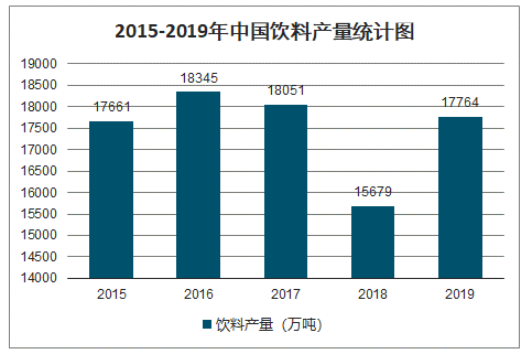 智研咨询发布的《2020-2026年中国食品饮料行业市场现状调研及市场发展前景报告》数据显示:2019年1-12月,全国规模以上饮料制造企业产量累计达到17763.5万吨,同比增长7%。其中,12月当月饮料产量1403.5万吨,同比增长16.8%。