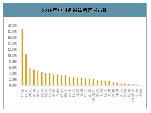 基于经济发展水平、人口总量和消费观念的差异,我国饮料在不同区域之间的生产、消费水平存在较大差异。总体上,经济发达、人口较多地区饮料的生产、消费水平高于其他地区。以广东省为例,2018年广东省饮料生产量占中国饮料生产总量的比例为18.88%,由于饮料行业有经济运输半径,生产基地通常靠近消费集中区域,而广东常住人口占比仅7.51%,可以合理推断广东省饮料消费水平高于全国平均水平。伴随居民整体收入水平不断提升、消费渠道延伸和观念的革新,其他地区对饮料的整体需求将逐步释放出来,具备更大的发展潜力。