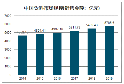 近年来,随着国民经济持续稳定增长、居民消费水平的不断提升及消费结构的升级,我国饮料行业呈现出良好的增长态势。我国包含包装饮用水、碳酸饮料、浓缩饮料、果汁、即饮咖啡、即饮茶饮料、能量饮料、运动饮料及亚洲特色饮料在内的饮料销售金额由2014年的4,652.16亿元增长至2019年的5,785.60亿元,复合增长率为4.46%。
