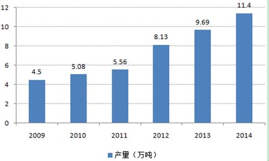 2009-2014年中国普洱茶产量(单位:万吨)