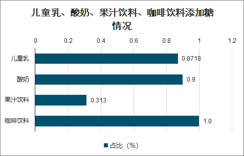 儿童乳、酸奶、果汁饮料、咖啡饮料添加糖情况