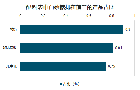 配料表中白砂糖排在前三的产品占比