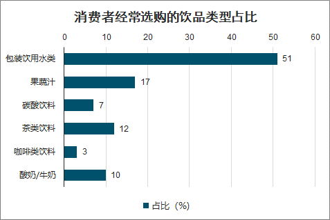 消费者经常选购的饮品类型占比