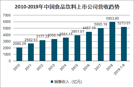 2010-2019年中国食品饮料上市公司营收趋势