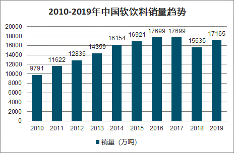 2010-2019年中国软饮料销量趋势