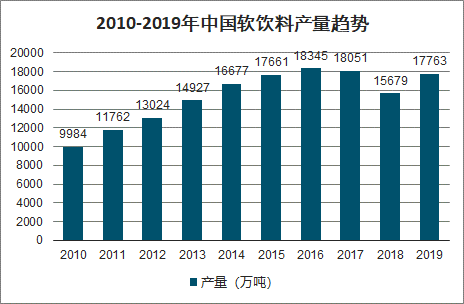 2010-2019年中国软饮料产量趋势