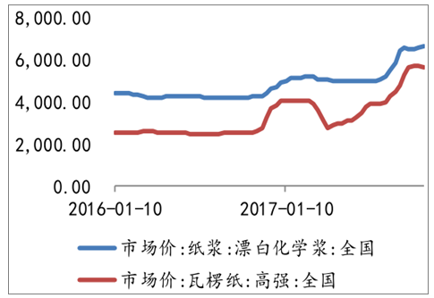 2016年至今纸浆和瓦楞纸价格