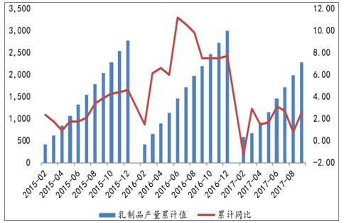 2015-2017我国乳制品产量累计值和累计同比