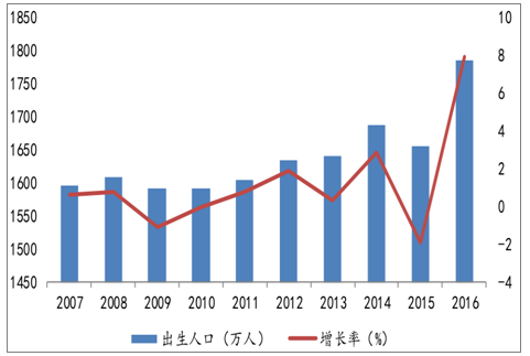 2007-2016年我国出生人口和增长率