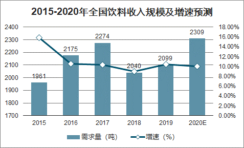 2015-2020年全国饮料收入规模及增速预测