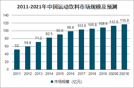 2011-2021年中国运动饮料市场规模及预测