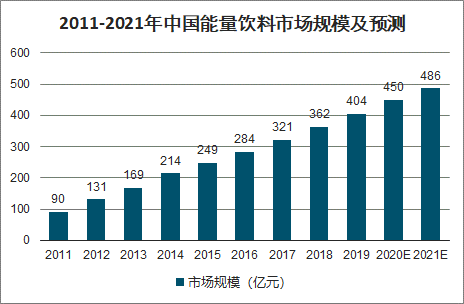 2011-2021年中国能量饮料市场规模及预测