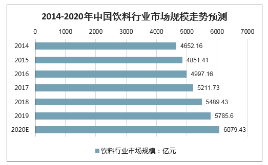 智研咨询发布的《2020-2026年中国饮料行业市场深度评估及发展趋势分析报告》显示:我国饮料销售金额由2014年的4652.16亿元增长至2019年的5785.60亿元,复合增长率为4.46%。预计2020年饮料销售金额有望突破6000亿元。