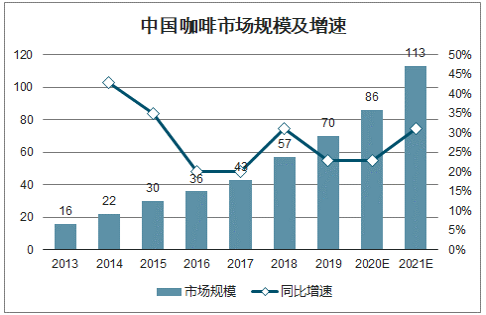 智研咨询发布的《2020-2026年中国咖啡行业市场现状调研及投资机会预测报告》数据显示:我国咖啡消费增速远高于世界平均水平。 随着人们生活水平的提升以及对咖啡文化认知的不断深入,我国咖啡消费呈逐年上升趋势。我国咖啡消费年均增速达15%,远高于世界2%的增速。2025 年,预计中国咖啡消费市场将达到1万亿的规模。