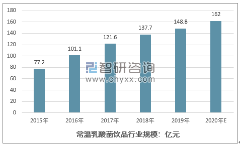2015-2020年中国常温乳酸菌饮品行业规模情况