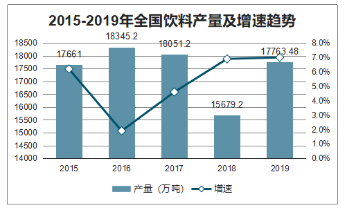 2015-2019年全国饮料产量及增速趋势