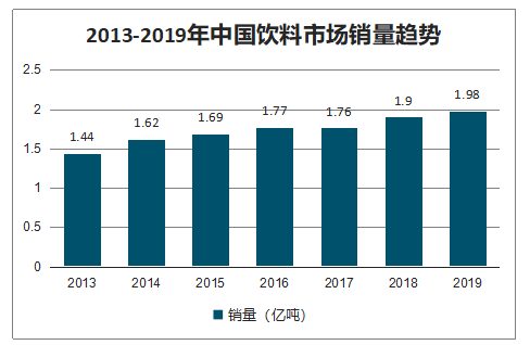 2013-2019年中国饮料市场销量趋势