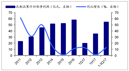 2017 年 1-3Q 乳制品上市公司归母净利润同比增 12.86%