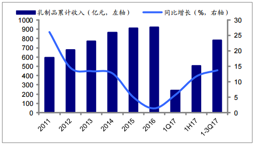 2017 年 1-3Q 乳制品上市公司收入同比增 13.7%