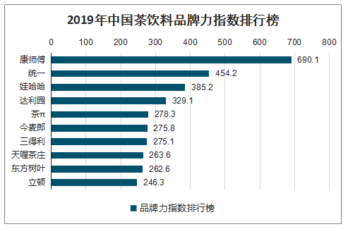 智研咨询发布的《2020-2026年中国茶饮料行业市场竞争格局及投资战略咨询报告》数据显示:从2019年中国茶饮料品牌力指数排行情况来看,尽管康师傅及统一牢牢占据行业前2的位置,但依旧有新品牌涌进榜单。凭借着主打年轻市场的产品茶π,农夫山泉从2016年的榜上无名逐步攀升到2019年的第5名,表明市场仍然给后来者留有机会。因此,在大品牌不能充分满足消费者新诉求的大背景下,茶饮料市场的大门依旧为携有潜在爆品的后来者所打开。