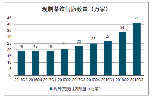 近年来消费升级驱动茶饮料市场不断细分,与现磨咖啡对即饮咖啡的驱动类似,以喜茶、奈雪の茶为代表的街边现制茶饮店陆续推出用纯茶打底的“奶盖茶”,迅速风靡大街小巷,2018年我国茶饮市场全面爆发,截至2018Q3全国现制茶饮门店数已达41万家。现制茶饮同样带动了即饮茶饮料领域的新发展,主打“健康”、“新鲜”、“个性”等标签的新式即饮茶饮料开始涌现。