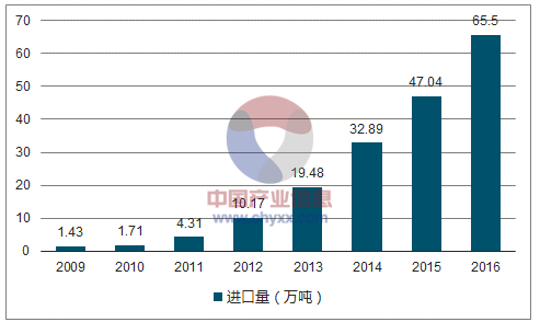 液态奶进口自 2011 年开始呈现快速增长趋势,一是因为进口液态奶种类多样、价格较低,满足了消费者多样化的需求;二是海运条件改善降低了液态奶的进口时间成本,电商代购的兴起提升了购买的便利程度。虽然近几年液态奶进口量持续增长,但是增速已逐步放缓。2016 年液态奶进口量约 65.50 万吨,占我国液态奶产量(2016 年产量为 2,737.20 万吨)的比例约为 2.39%。2009 年至 2015年,我国乳制品进口以工业乳粉为主,2016 年液态奶进口占比首次超过工业乳粉,液态奶进口快速增长给国内以液体乳为主的乳制品加工企业带来一定冲击。