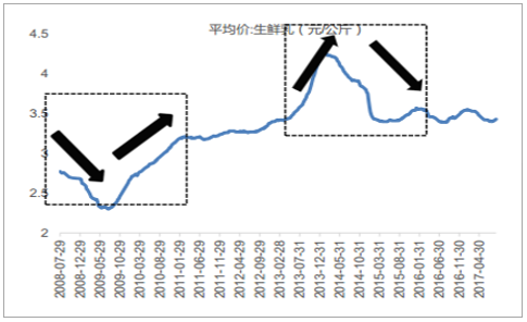 原奶供需格局优化、 原奶价格底部弱复苏。原奶价格呈周期性,我们认为国内原奶价格有望弱复苏核心判断逻辑:供给高峰已过+需求改善。