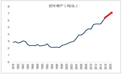 原奶供需格局优化、 原奶价格底部弱复苏。原奶价格呈周期性,我们认为国内原奶价格有望弱复苏。为什么是弱复苏? 奶牛产量下降速度会慢于产能退出速度,国内奶牛单产仍持续提升。
