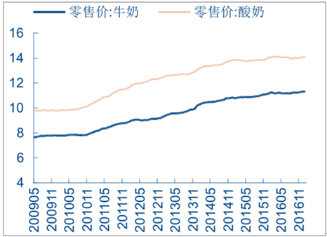 牛奶和酸奶均价在 2010 年以来持续上涨
