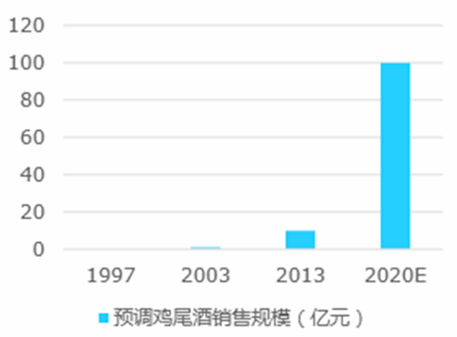预调鸡尾酒销售规模增长加速(亿元)