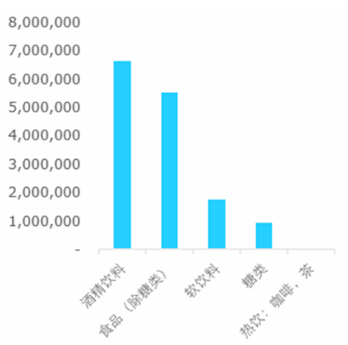 2015 年我国食品饮料行业消费额达到 8.63 万亿元人民币,相比 2014 年同期增 长 7.4%。受国内消费需求低迷影响,预计 2016 年消费约为 8.89 万亿元人民币,同比增速下滑至 3%。细分来看,酒精饮料(白酒、啤酒、葡萄酒)和食品(糖类除外)在市场份额中分别占到 44.3%和 37%,居主导地位。
