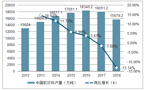 国家对软饮料行业实施了更加严格的监管标准,淘汰掉一批不符合生产标准的软饮料工厂,对食品安全问题,软饮料生产工艺问题更加关注,对软饮料灌装生产线、原材料及食品添加剂制定了相应的安全标准,行业监管趋严一方面利于软饮料产品向高质量、高标准方向发展;另一方面将淘汰小型生产作坊,使市场份额向龙头企业集中。在行业监管严格的趋势下,随着小型生产作坊的逐渐关停,我国软饮料行业进入了产品结构调整期,产量呈现了下降的趋势。根据数据显示,2018年,我国软饮料产量为15679.2万吨,较上年同比下降13.14%。
